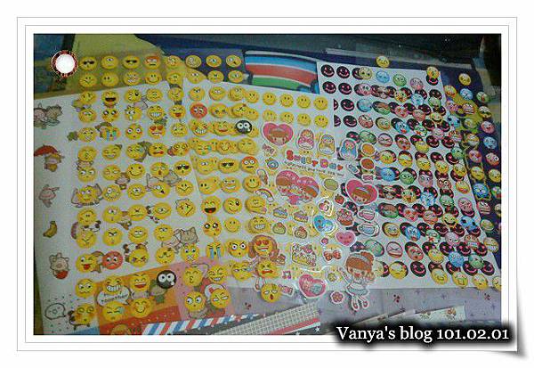 臉部表情貼紙、卡通貼紙、裝飾貼紙為主軸,依照當下的書寫內容貼上,